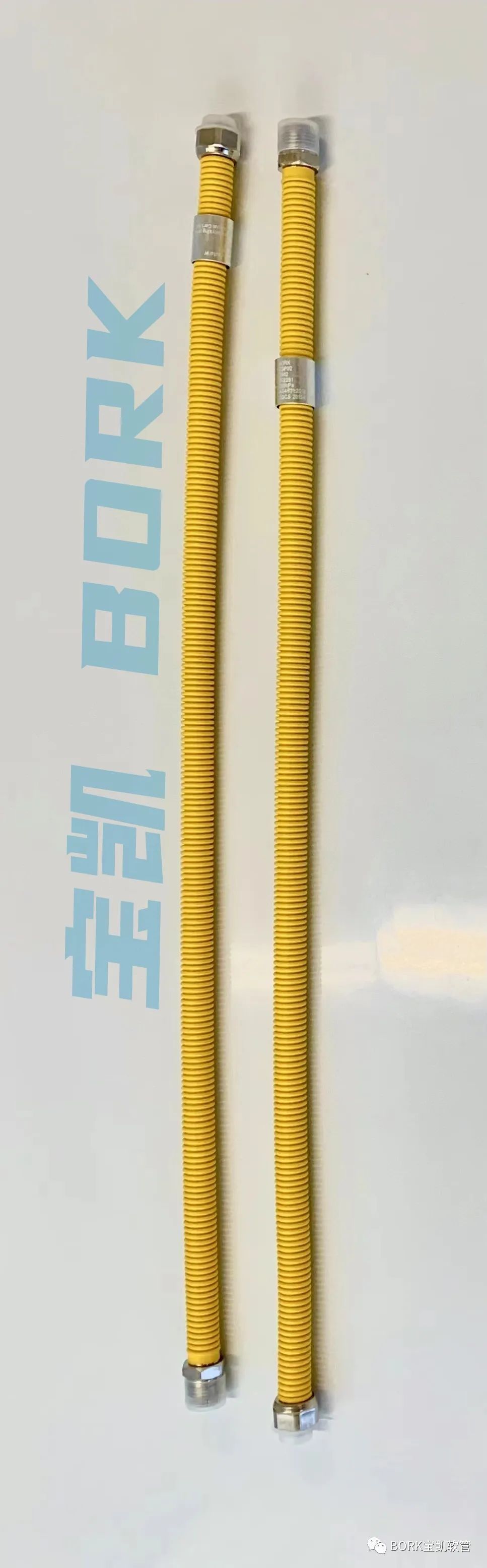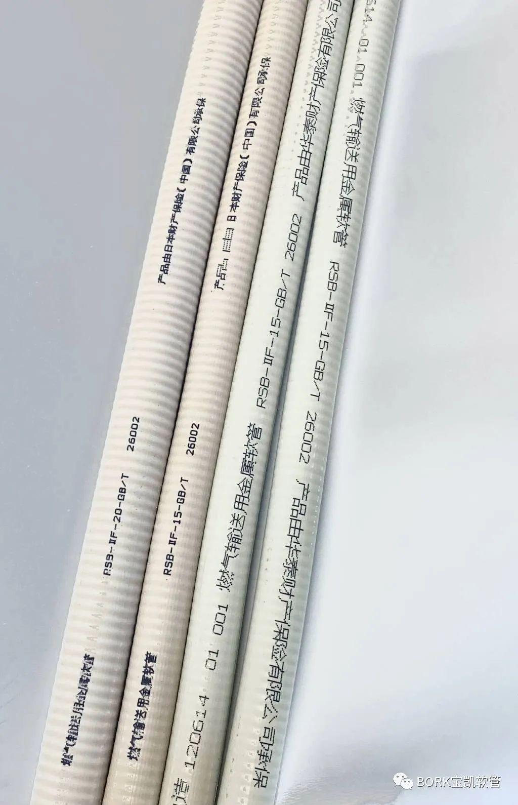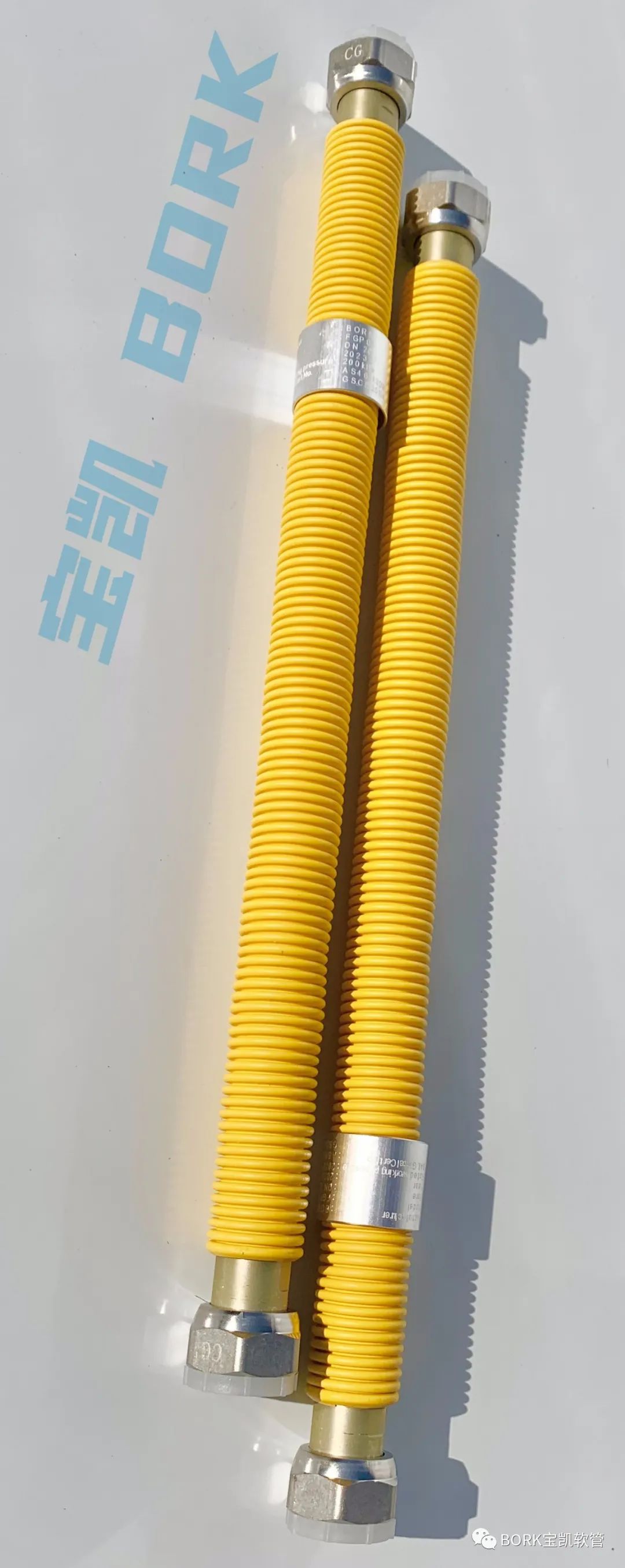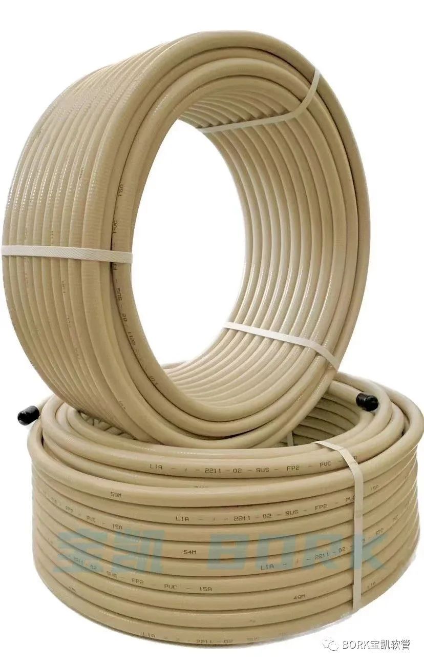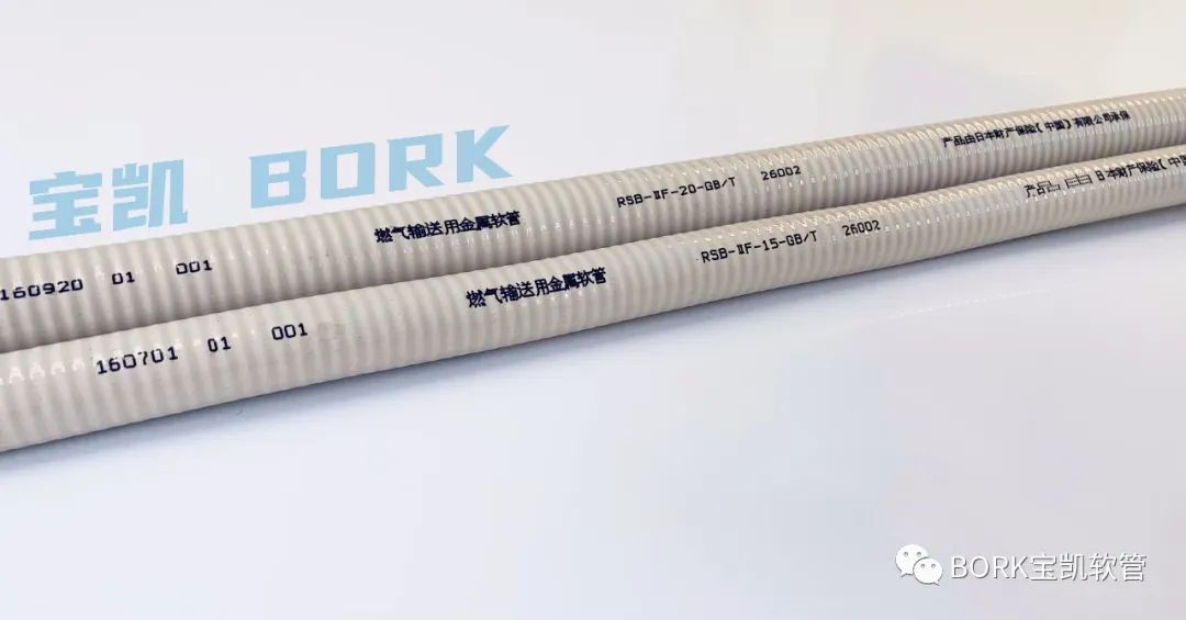 不鏽鋼軟管披覆PVC包層,“ 燃氣輸送用金屬(shǔ)軟管 ” 打字印刷。